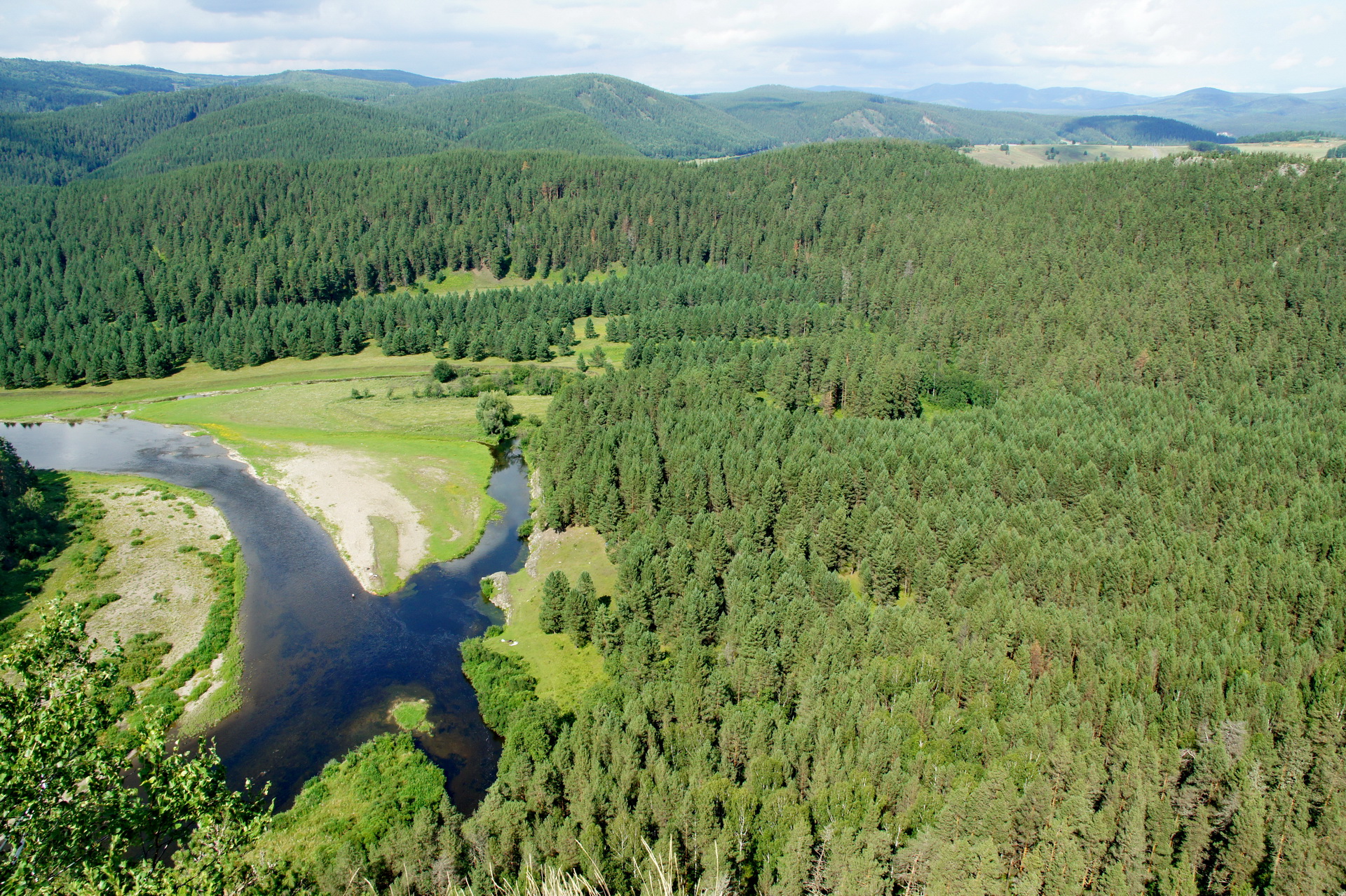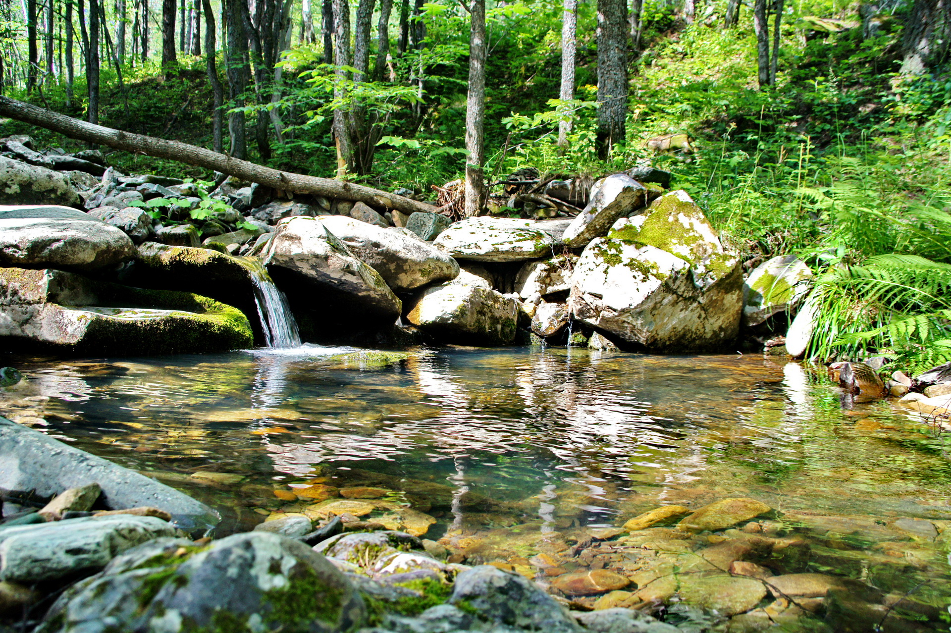 долинах прозрачные ручейки и неглубокие реки со скалистыми берегами и